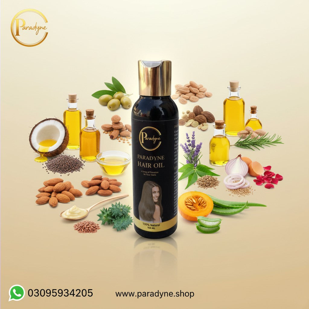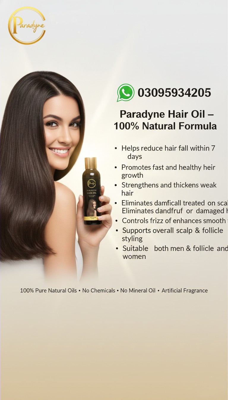 “Paradyne Hair Oil – For Strong, Long & Healthy Hair.”